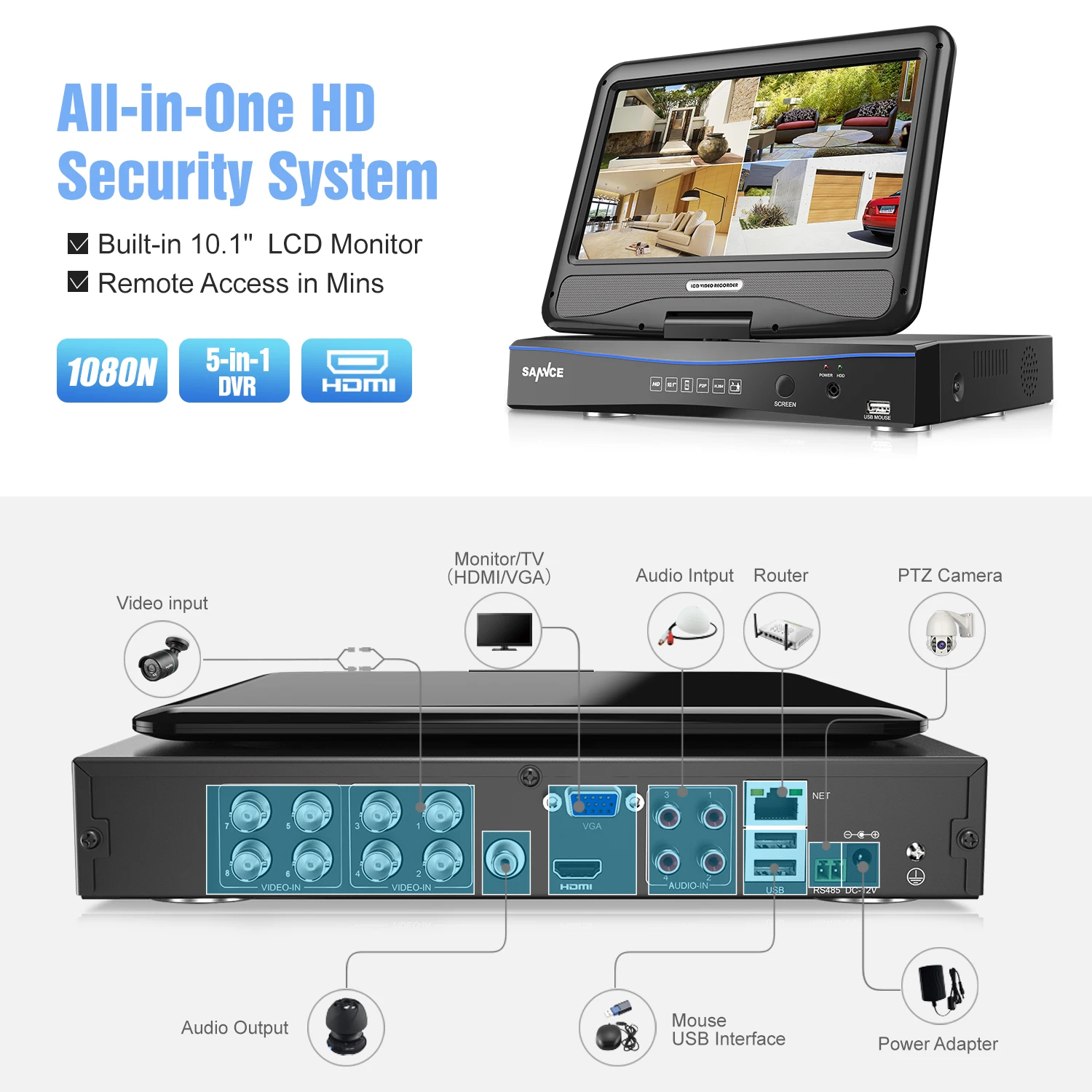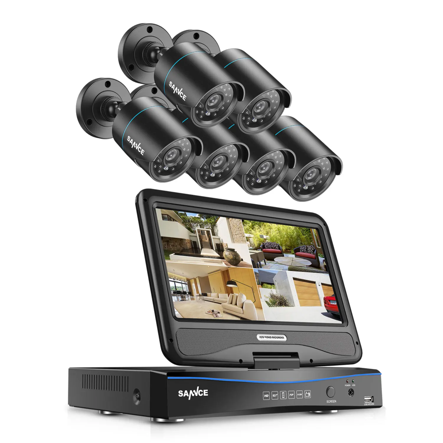 SANNCE 10.1inch Displayer 8CH CCTV System 1080N HDMI DVR Kit 6PCS 720P Outdoor Security Waterproof